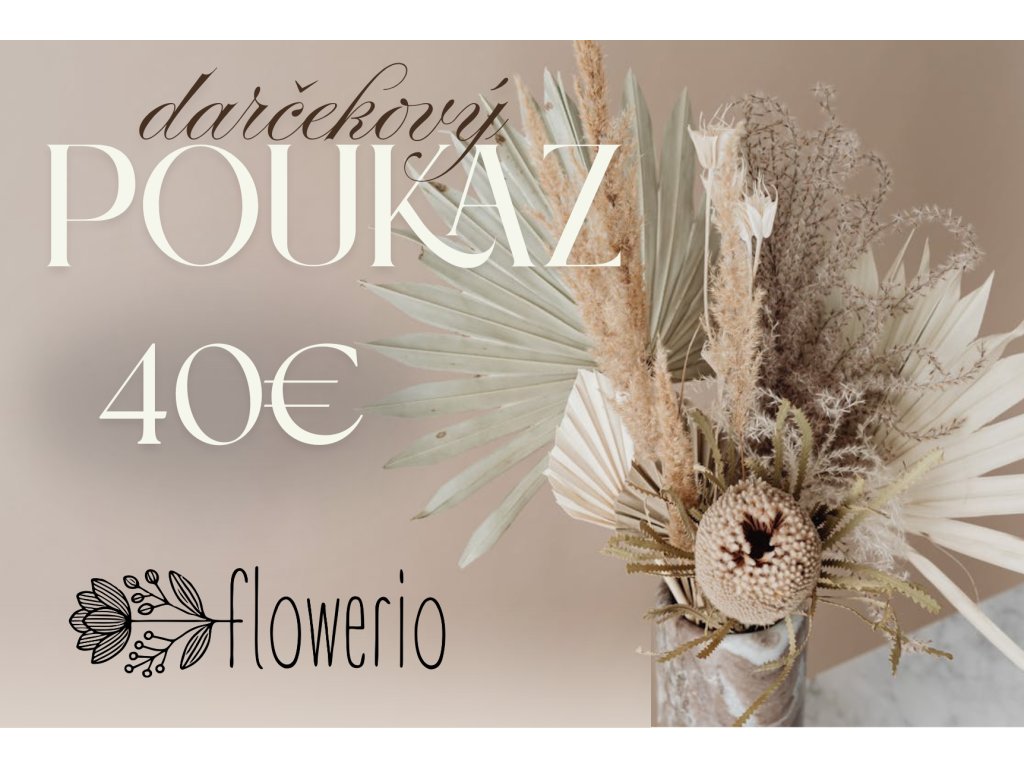 The gift voucher is issued by the e-shop Flowerio.eu After purchase, it is delivered electronically in PDF format or as a unique code that can be redeemed with your next order. The value of €40 will be deducted directly in the cart.