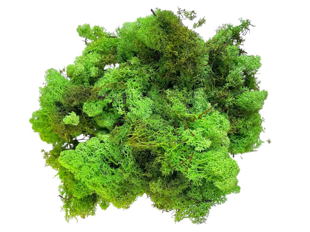 Stabilized reindeer moss light green (Cladonia rangiferina) is a popular natural material for creating moss pictures, logos, and interior decorations. Thanks to its soft and flexible structure, it easily adheres to wood, MDF boards, or canvas. Icelandic lichen for moss pictures is used in interior design and floristry as an ecological and durable alternative to live mosses.