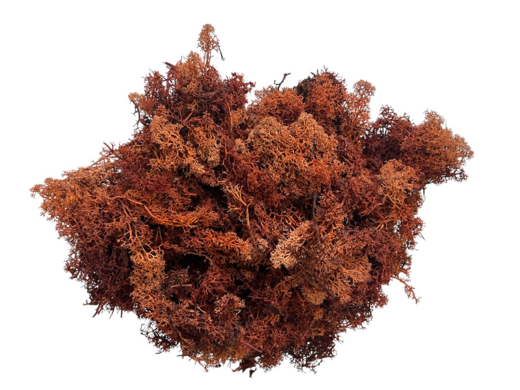 Stabilized reindeer moss brown (Cladonia rangiferina) is a unique decorative material that combines the natural beauty of Nordic nature with long durability. Thanks to its warm earthy shade, it creates a pleasant harmony and perfectly complements interiors in a natural or minimalist style. You can use it in the production of moss pictures, wreaths, floral arrangements, or as a decorative element in a bowl, terrarium, or on a table.