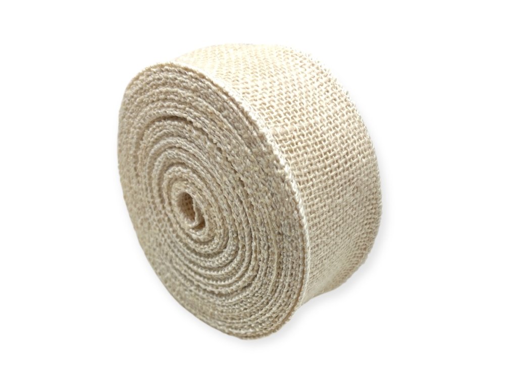 Jute ribbon 5 cm × 9 m – cream Cream jute ribbon 5 cm wide and 9 m long, ideal for tying flowers, decorations, gift wrapping, or creative DIY projects with a subtle natural tone.