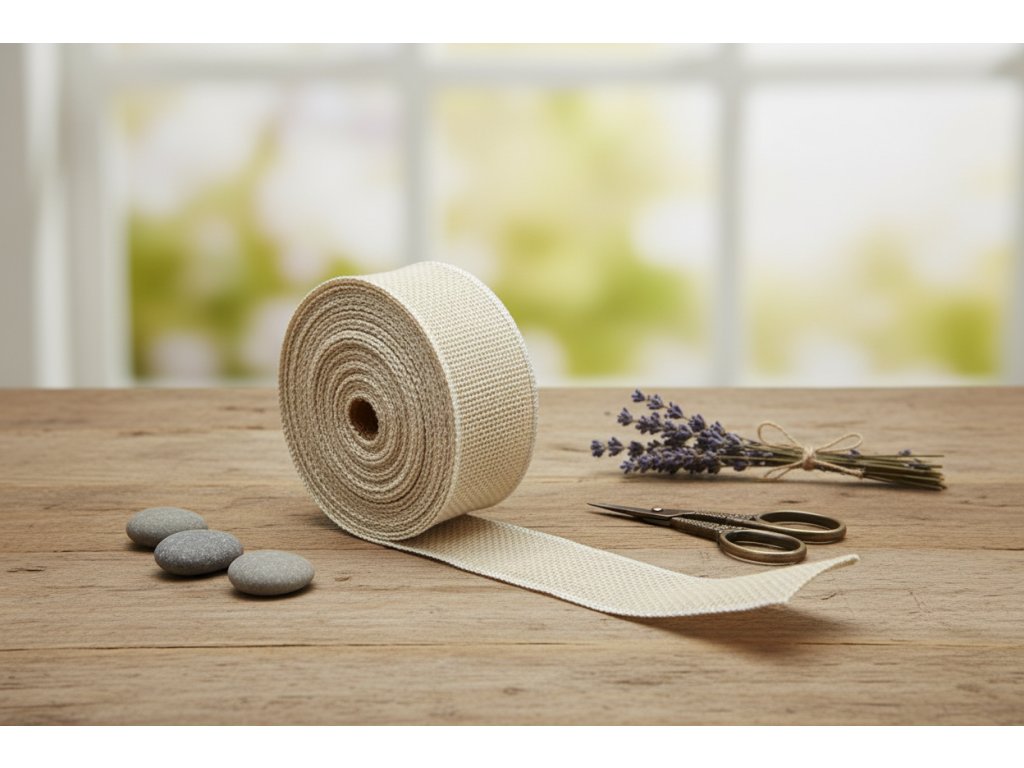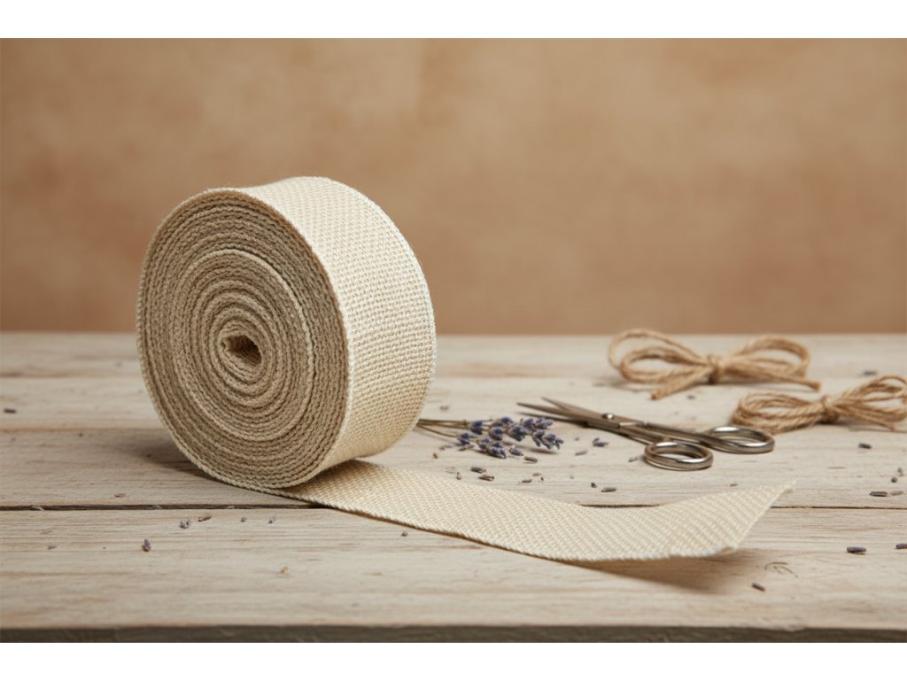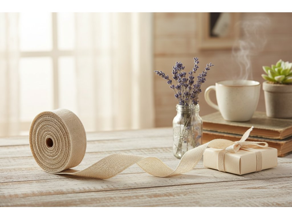 Jute ribbon 5 cm × 9 m – natural Natural jute ribbon 5 cm wide and 9 m long, ideal for tying flowers, decorations, gift wrapping, or creative DIY projects.