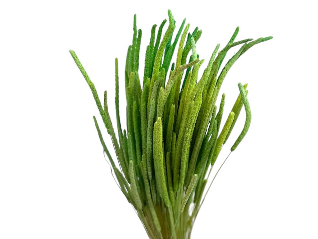 Timothy grass (Phleum pratense) originates from Europe, where it was originally used as fodder grass. Today, it is specially cultivated for decorative purposes as well. The stems are harvested by hand, gently dried, and then dyed in delicate pastel tones to preserve their natural shape and soft spikelet texture.