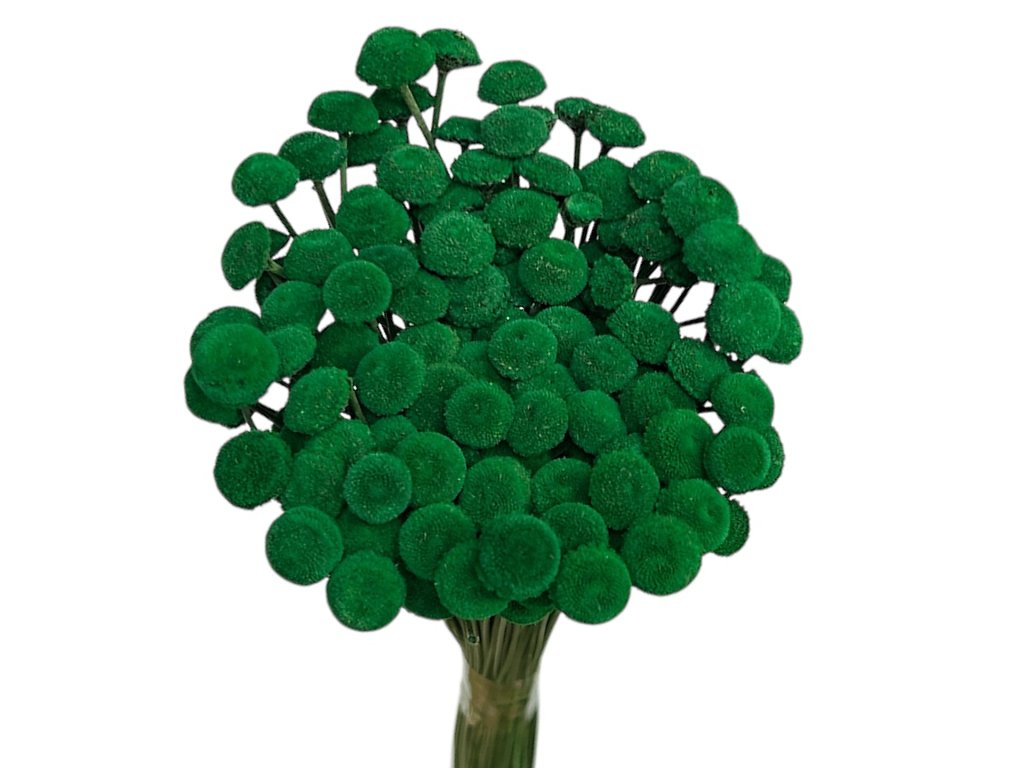 Yellow Button flowers were once used in Brazil during celebrations as a symbol of joy and new beginnings. In the European environment, dark green shades are mainly associated with Christmas – they resemble coniferous branches and eternal greenery, which symbolizes life and hope even in winter. Therefore, Button flowers in this color are perfectly suited for advent wreaths, festive table decorations, and Christmas arrangements.
