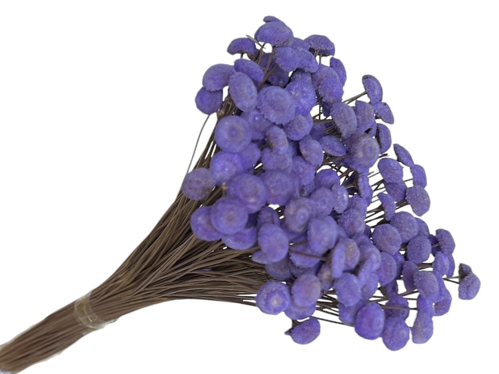 Button flowers require no maintenance, only a dry environment and protection from direct sunlight. Dust can be removed with a soft brush or cold air from a hairdryer. This is a long-lasting, sustainable solution for anyone who prefers natural alternatives to plastic decorations. To refresh it, you can use an anti-static spray for dried flowers SPRING pro Florist. Handle with care, as the heads are fragile.