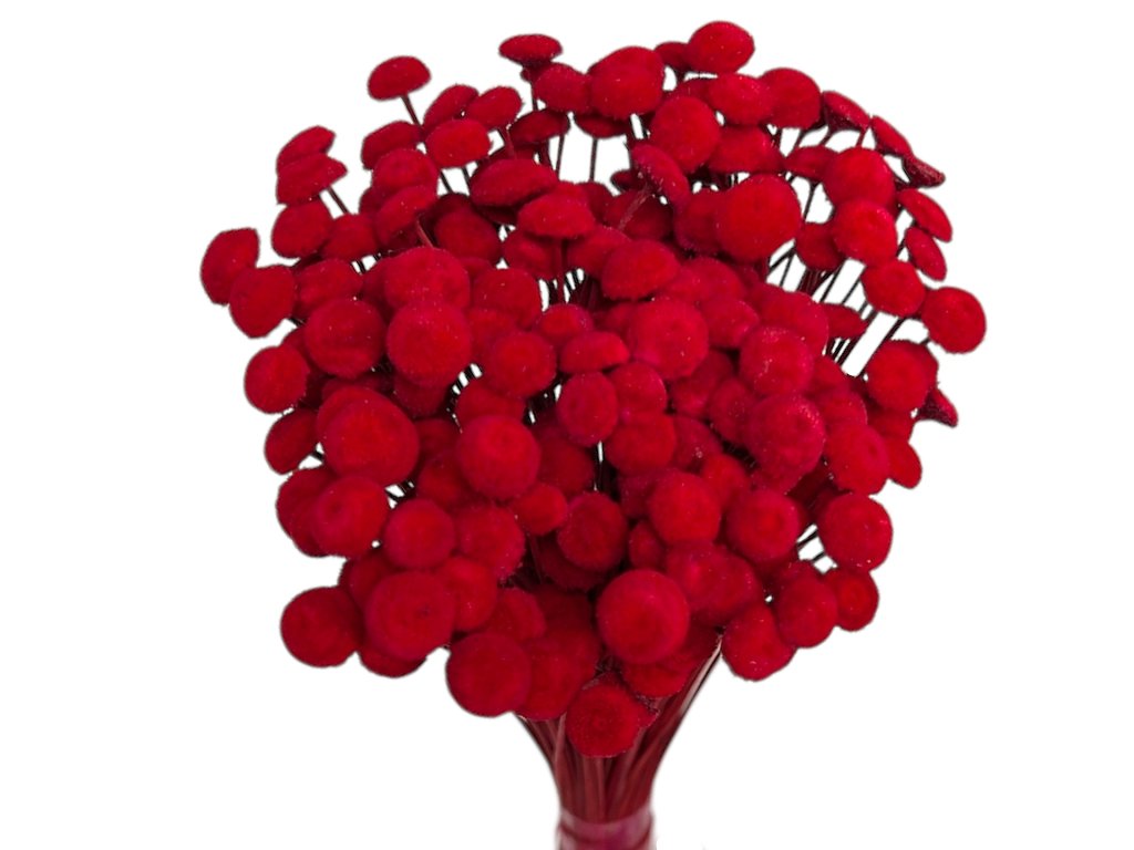 The color red has been associated with passion, strength, and energy since time immemorial. In various cultures, it also symbolizes life, love, and protection. In arrangements, it resembles luxurious textiles like 'red velvet' and immediately attracts attention. Therefore, red Craspedia flowers are a popular element not only in winter decorations but also in New Year's celebrations or for special occasions.