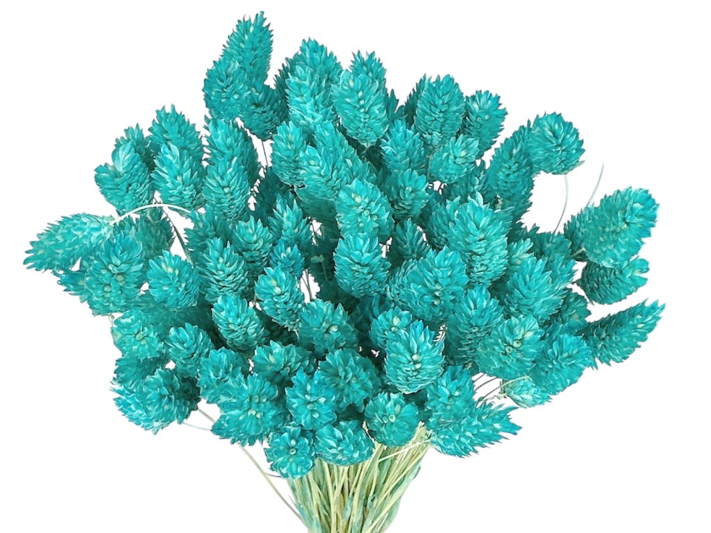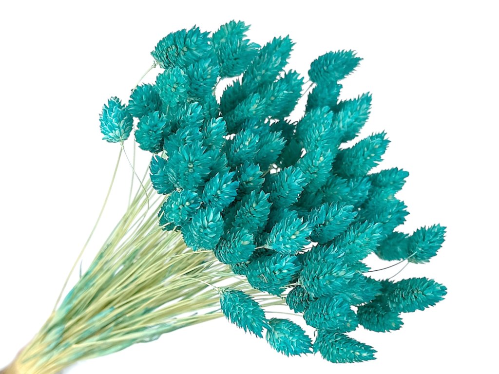 Phalaris (Latin Phalaris canariensis) is a traditional dried arranging grass, known for its strength, subtle sheen, and excellent shape retention. Grown in Europe, gently dried and professionally dyed to a light azure shade that retains its intensity and freshness for a long time.