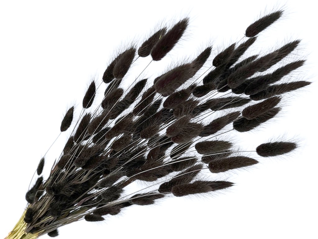 Lagurus ovatus – bunny tail grass – originates from European cultivation. After harvesting, it was gently dried and dyed a deep black. This color is particularly popular in modern floral design for its ability to create dramatic effects and highlight other elements in a composition.