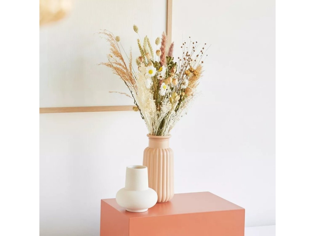 The natural colouring of this bouquet enhances the beauty of dried plants in their natural form. Beige and brownish tones symbolise peace, balance, and a return to nature. Such arrangements are popular in interiors in the boho, hygge, or wabi-sabi style, where their authentic simplicity shines.