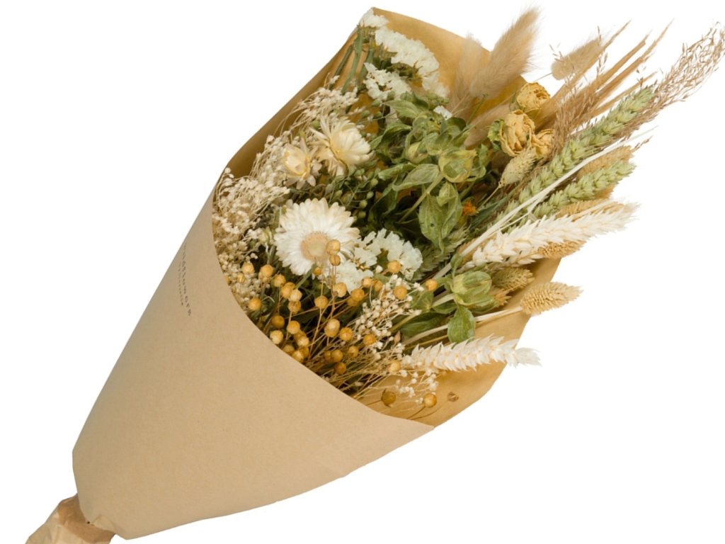 The bouquet comes from a controlled farm in the Netherlands, where flowers are grown with an emphasis on sustainability and quality. After harvesting, they are gently dried and hand-arranged into an aesthetic ensemble. Total length approx. 50 cm, weight approximately 160 g.