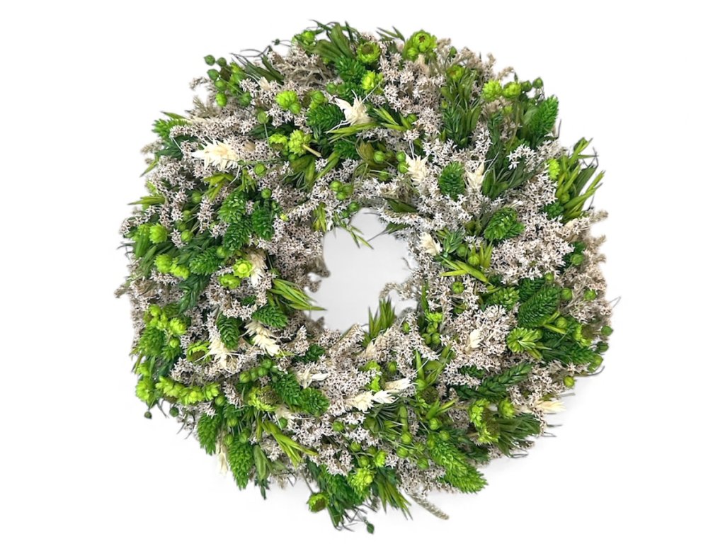 White and cream reflect purity, light, and peace. Together they create a balanced contrast that looks natural, clean, and elegant. Such a wreath is like a silent message from nature – it combines simplicity, durability, and beauty that does not fade.