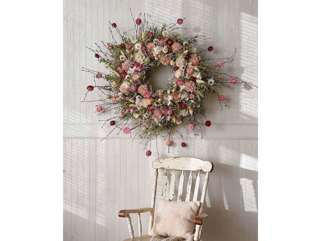 ATTENTION: As this is a handmade product made from natural materials, each wreath is unique. The shape, density, arrangement of flowers, small details, and color shades may slightly differ from the photos. Natural materials react to seasonality, availability, and the handmade process itself, therefore it is not possible to create two completely identical pieces. These subtle variations are precisely the mark of honest craftsmanship and make each wreath unique.