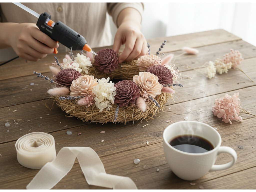• DIY tip: gently highlight the edges of the flowers with a pearlescent or rose-gold spray for a sophisticated effect.