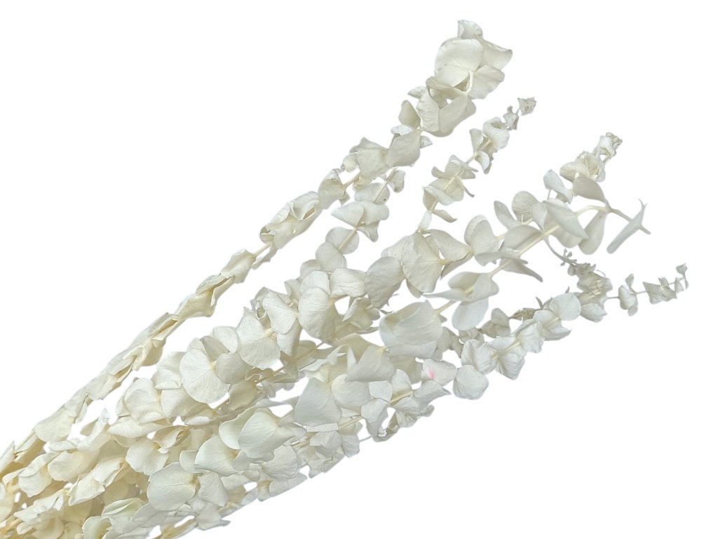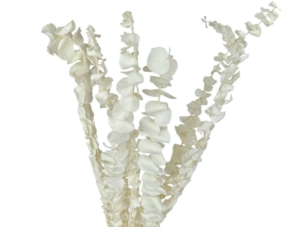 Baby blue eucalyptus (lat. Eucalyptus pulverulenta) is originally from Australia. Young shoots are collected and then stabilized – meaning they are treated with a glycerin solution that replaces the natural sap. Thanks to this, they retain their flexibility, softness, and their beautiful color.