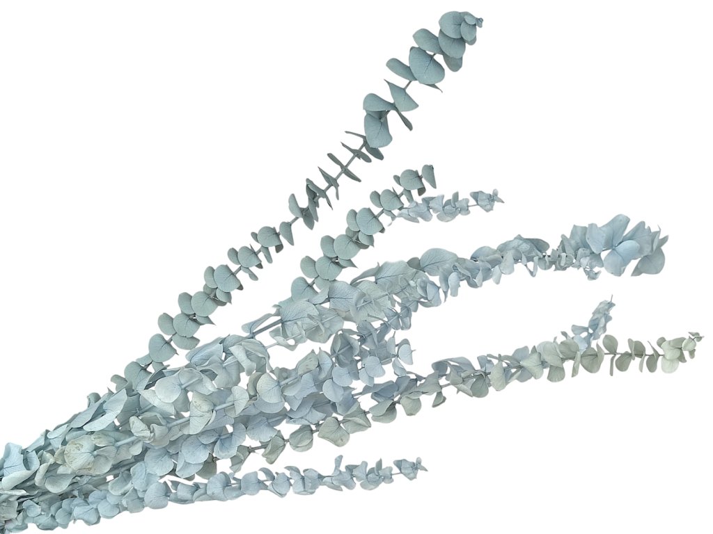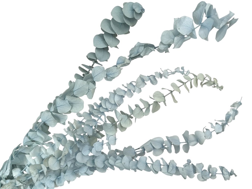 Baby blue eucalyptus (lat. Eucalyptus pulverulenta) is originally from Australia. Young shoots are collected and then stabilized – meaning they are treated with a glycerin solution that replaces the natural sap. Thanks to this, they retain their flexibility, softness, and their beautiful color.