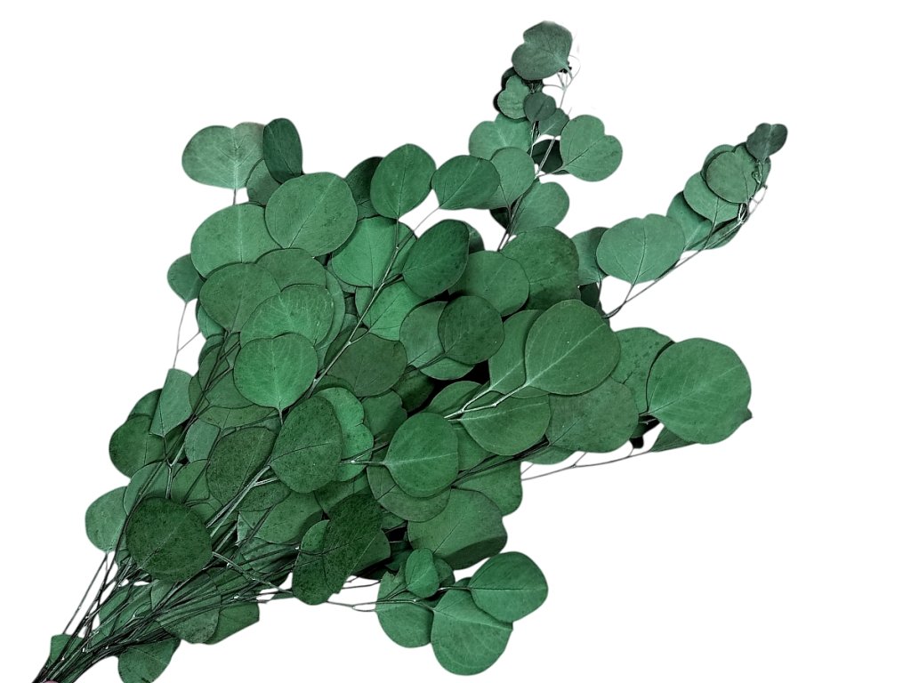 Eucalyptus originates from controlled cultivation areas. Sturdier, voluminous shoots are collected and then stabilized with a glycerin solution. This replaces the natural sap, and the leaves retain their structure, color, and flexibility for months.