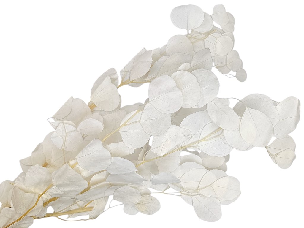 Eucalyptus originates from controlled cultivation areas. Sturdier, voluminous shoots are collected and then stabilized with a glycerin solution. This replaces the natural sap, and the leaves retain their structure, color, and flexibility for months.