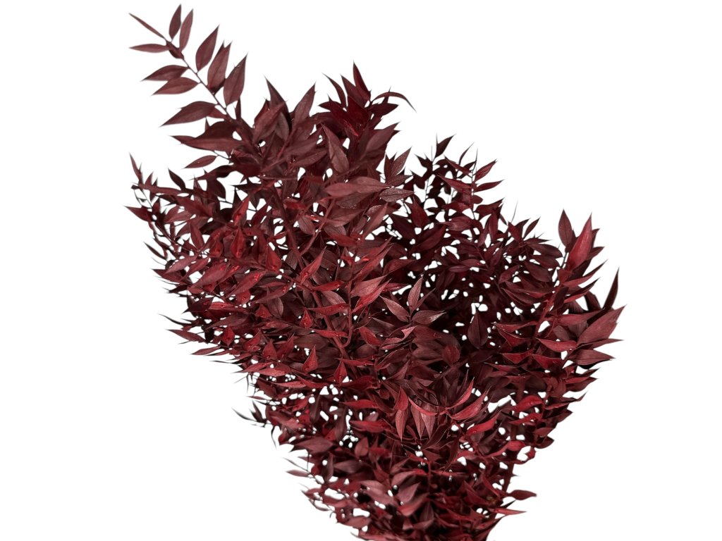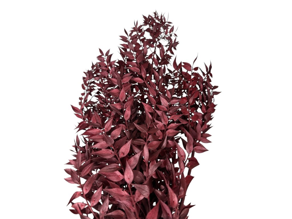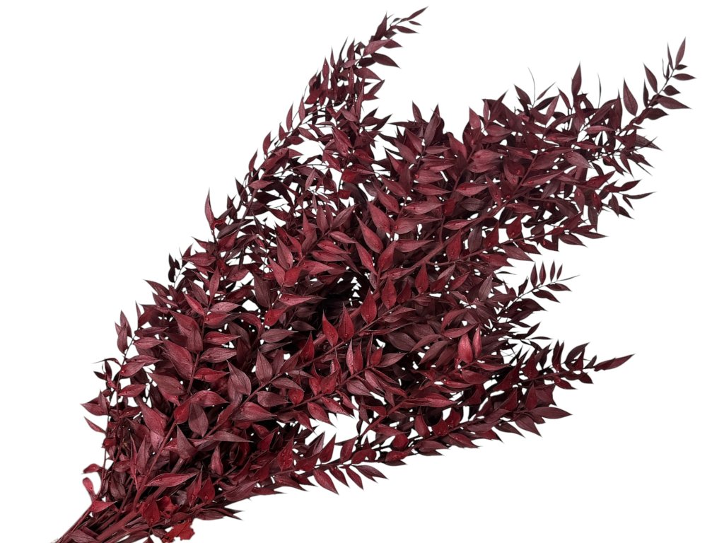 Ruscus (Ruscus aculeatus) originates from Europe and the Mediterranean. The leaves are gently stabilized after harvesting with a glycerin solution with dye, which replaces the natural sap. Thanks to this, they retain their flexibility, rich color, and natural appearance.