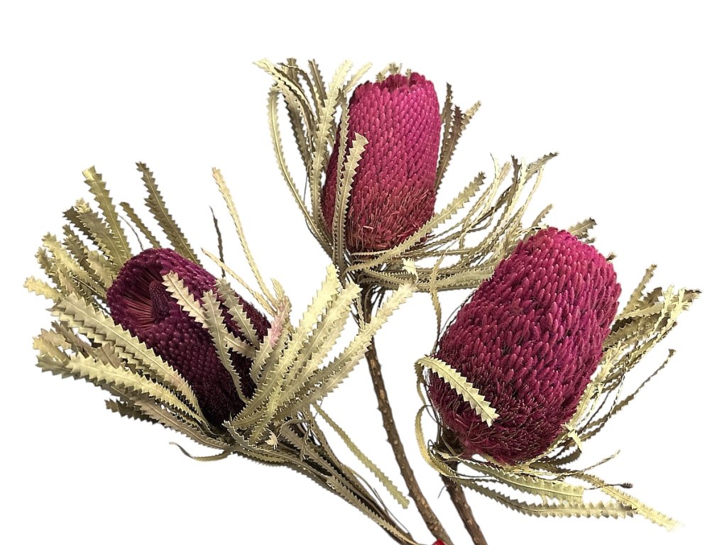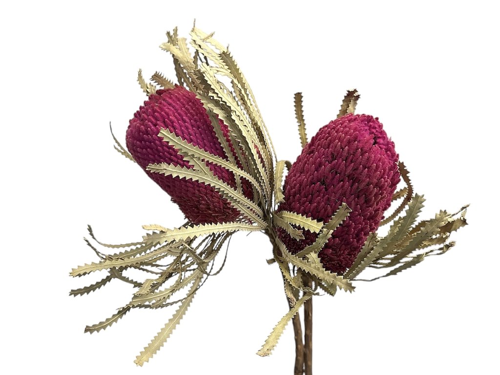 Banksia Hookerana originates from Australia, where it grows as a shrub with striking cone-shaped flowers rich in texture. After harvesting, it is dried slowly in the air to preserve its authentic shape, firmness, and the natural structure of its individual petals. The coloring is decorative, durable, and adapted for floristry purposes.