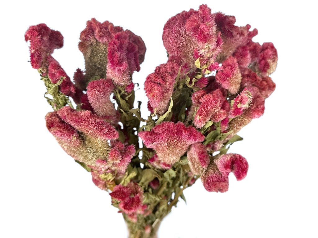 Celosia is a heat-loving plant native to Asia and Africa. The ‘Chief’ variety is grown specifically for cutting and drying – it stands out with its large and firmly curled flower. After harvesting, the flowers are naturally dried in the shade to preserve their rich color and velvety surface.