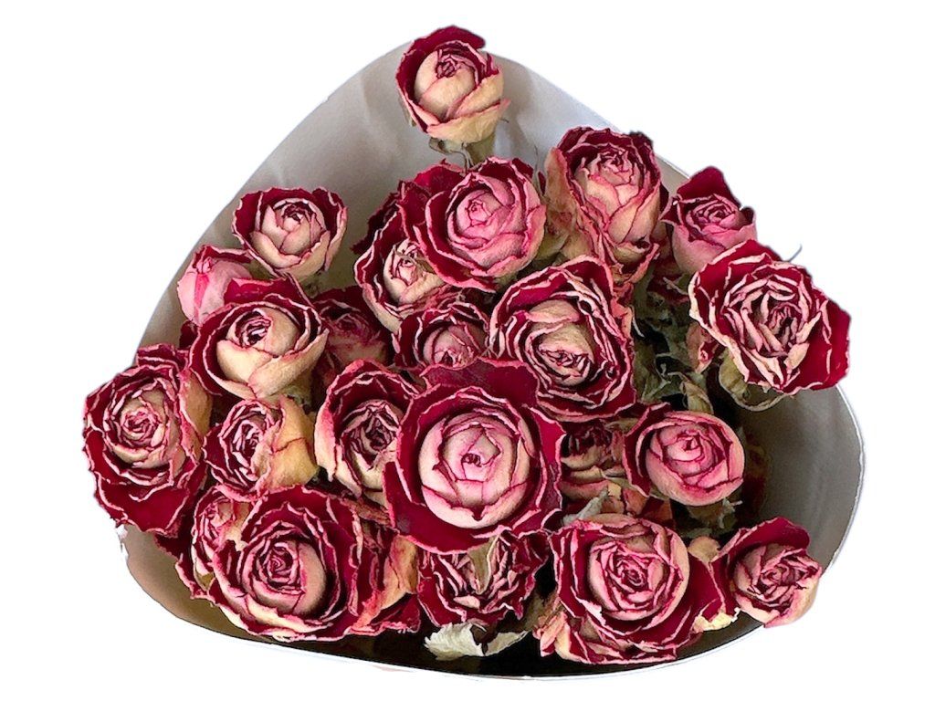 Roses are harvested during flowering, then gently heat-dried to preserve their shape, color, and natural structure. Ombré color transitions are natural, identically preserving the softness and authentic appearance of the flowers.