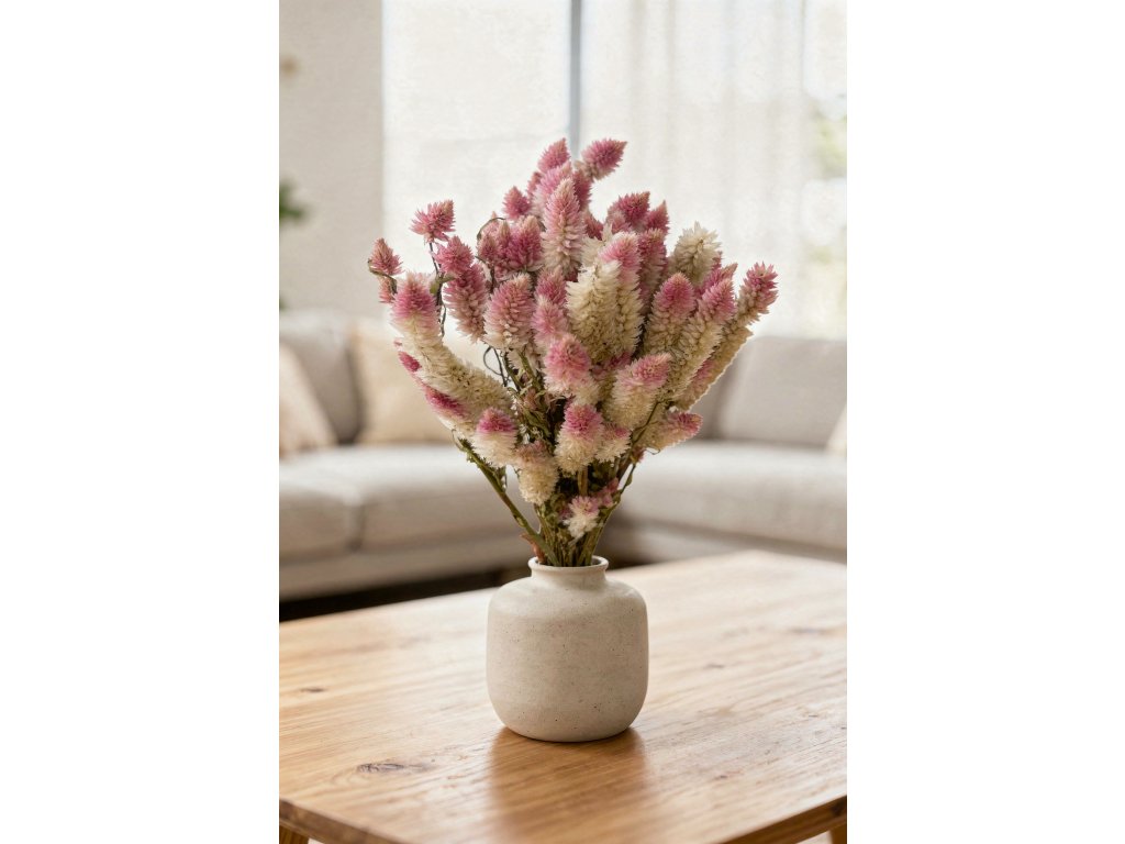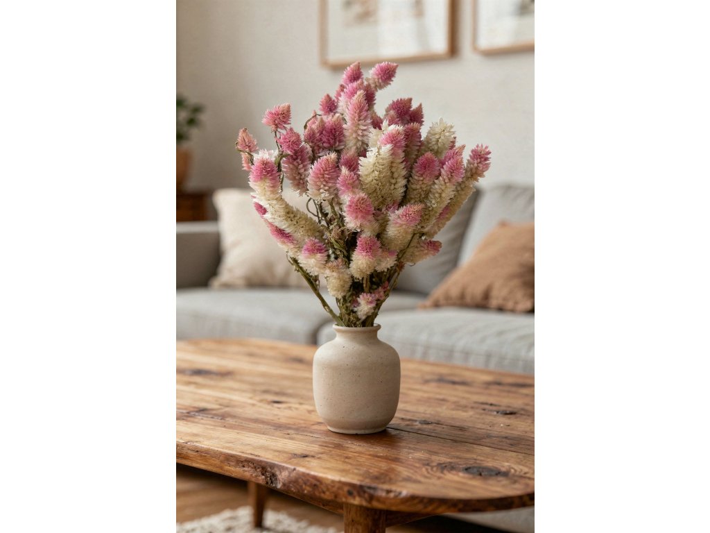 The name “Celosia” comes from the Greek word kelos, meaning “to burn” – referring to the vibrant appearance of these plants. In many cultures, celosia is considered a symbol of vitality and joy. The pink color is associated with tenderness, romance, and love, which is why naturally pink celosias are popular in wedding and gift arrangements.