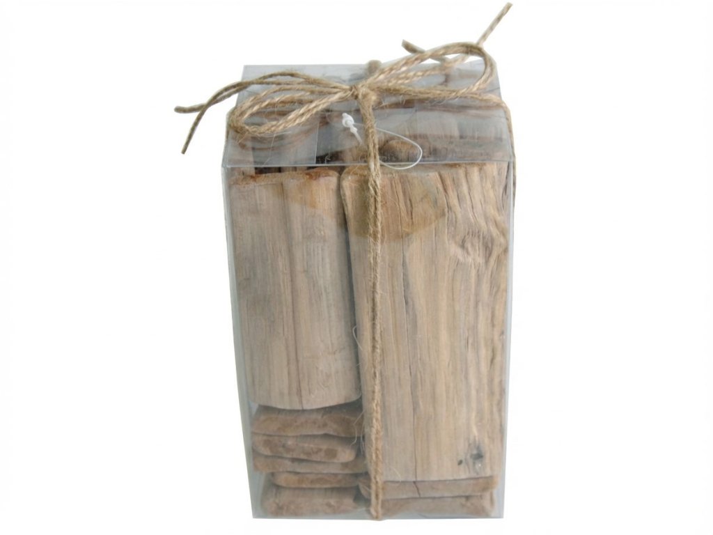 Store the wood pieces in a dry place, away from moisture. Dust can be removed with a soft brush or by gently blowing with cold air. If you are gluing them into a decoration, use an appropriate amount of glue so that the natural patina remains visually clean.