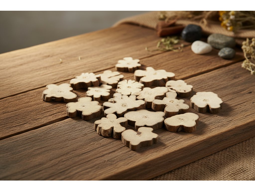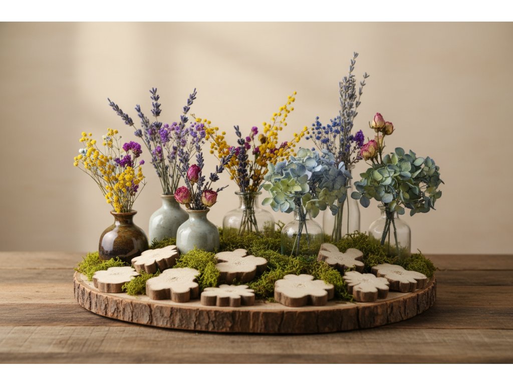Wooden slices are a universal natural material for decoration and personalization. You can write on them, draw, paint, glue ornaments, or use them as a practical base for arrangements. Thanks to the mix of sizes (15–40 mm), they are suitable for small details as well as more prominent elements – smaller pieces fill gaps, larger ones create a nice "rustic" accent.